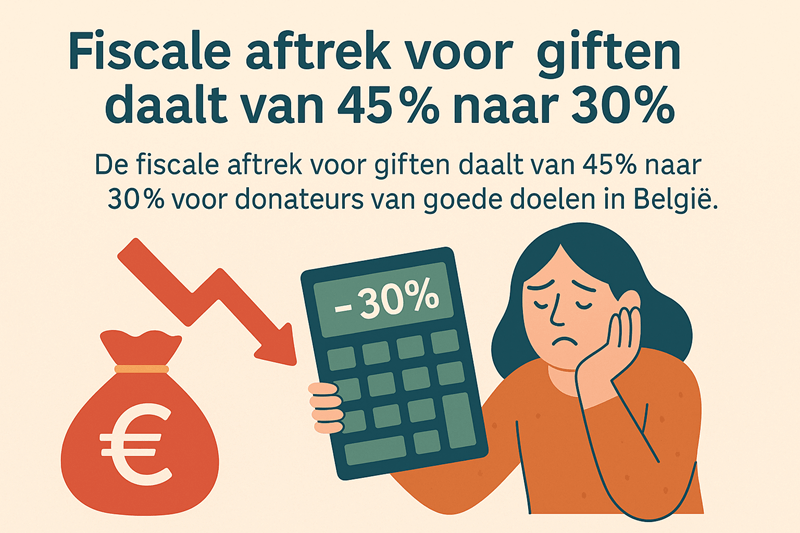 De Belgische regering verlaagt de fiscale aftrek voor giften van 45% naar 30%. Dat betekent dat wie een organisatie steunt met een gift, voortaan minder belastingvoordeel krijgt. De maatregel treft Vluchtelingenwerk Vlaanderen én veel andere organisaties in België.
