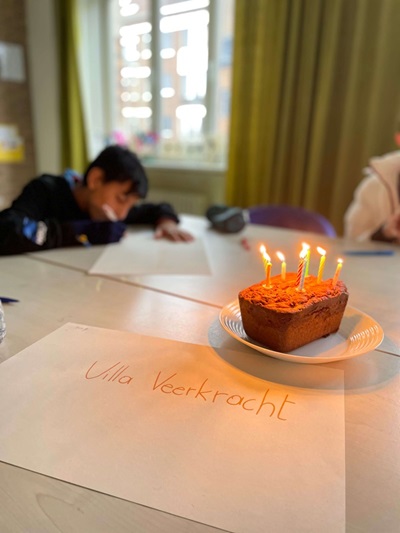 De viering was een hartverwarmend samenzijn van jongeren die vorig schooljaar deelnamen aan Villa Veerkracht en de jongeren die dit jaar hun plek binnen het project hebben gevonden. Samen maakten ze vriendschapsbandjes, bereidden ze heerlijke hapjes en bliezen ze de kaarsjes op de feestcake uit onder een warm applaus.