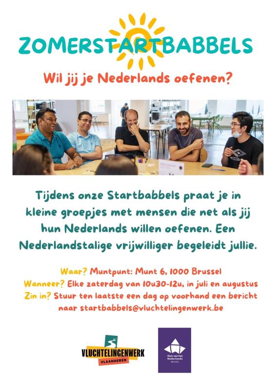 De Startbabbels zijn een eenvoudige manier om je Nederlands te oefenen en te onderhouden. Verschillende anderstaligen kunnen er luchtige gesprekken voeren onder begeleiding van een Nederlandstalige vrijwilliger.