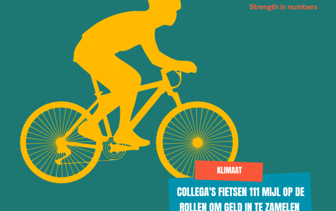 Collega's Vluchtelingenwerk houden symbolische fietsactie tegen klimaatonrecht